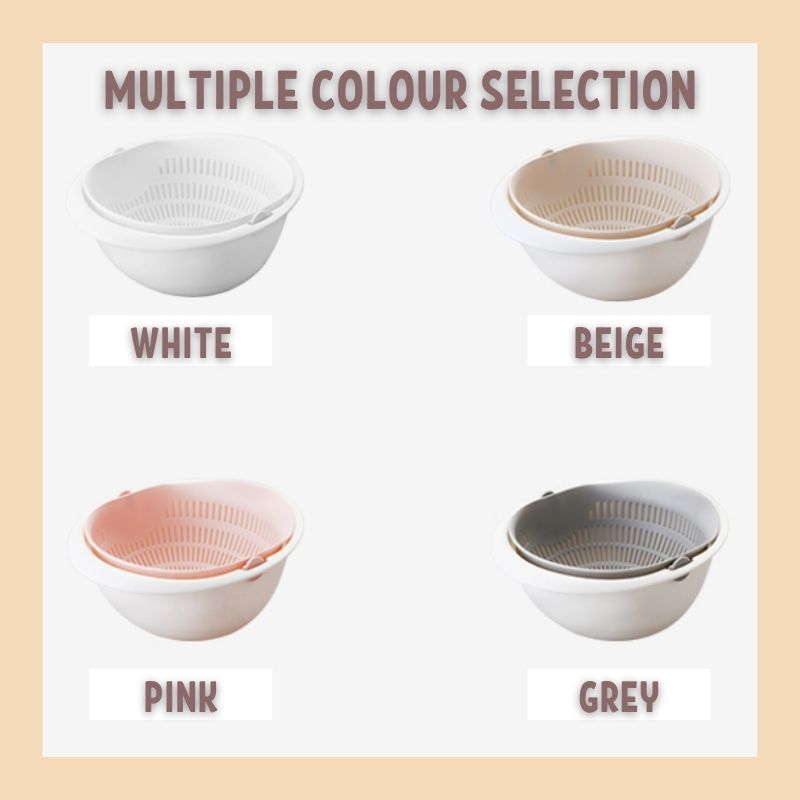Inner basket with holes for straining and outer bowl for retaining water. The wash and drain bowl can be easily separated for use. It is super convenient and space-saving, much better than traditional designed colander.